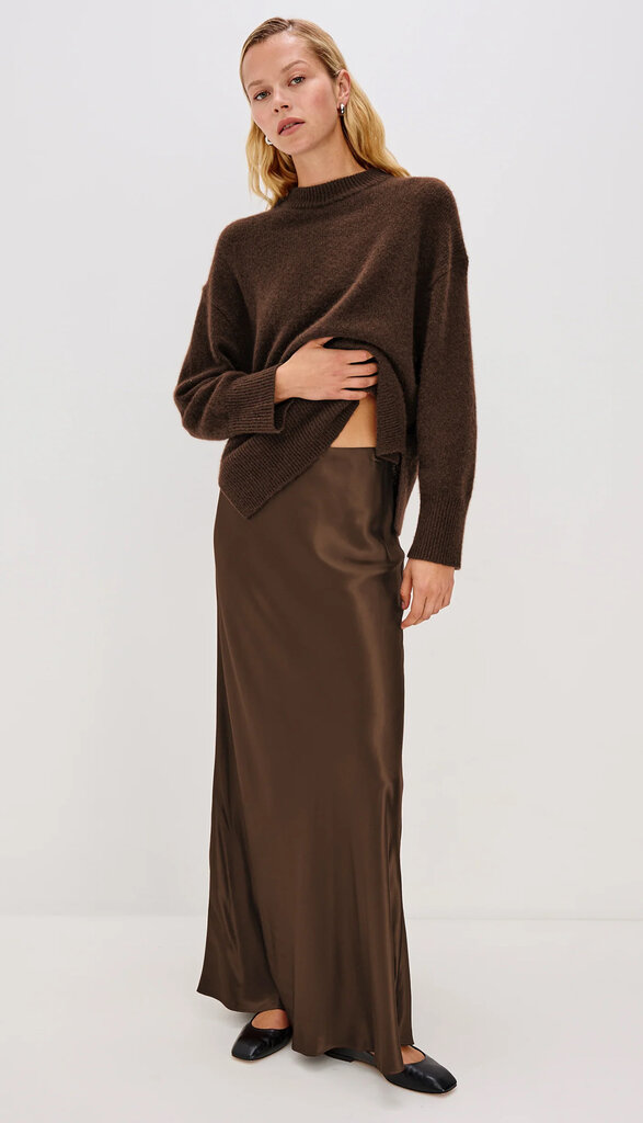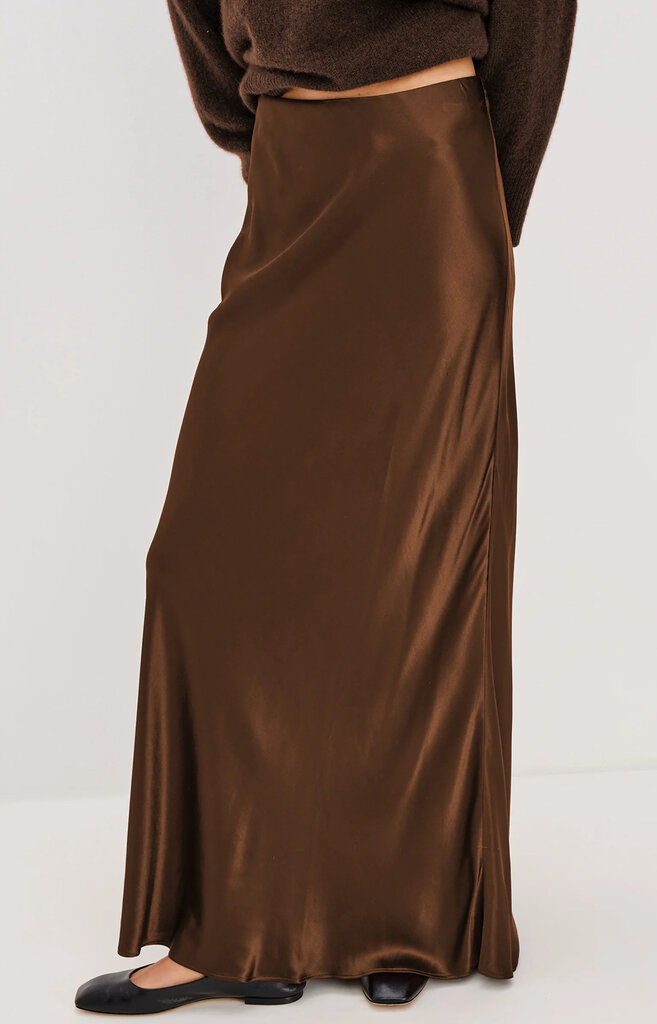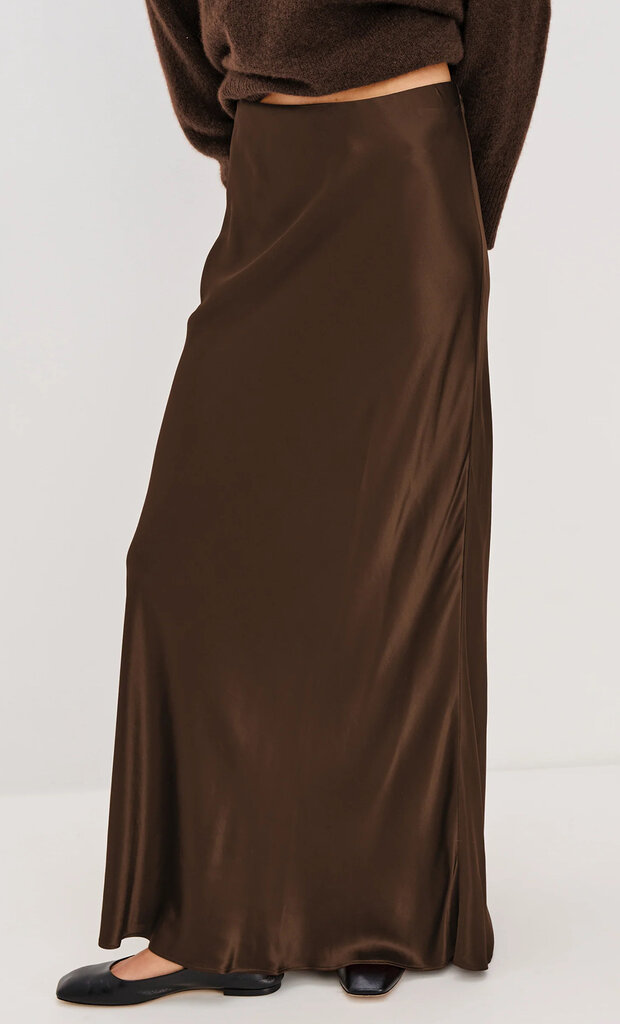 The Romina is a satin-back crepe skirt cut on the bias for a fluid silhouette. Smooth and flattering, it moves effortlessly with the body.