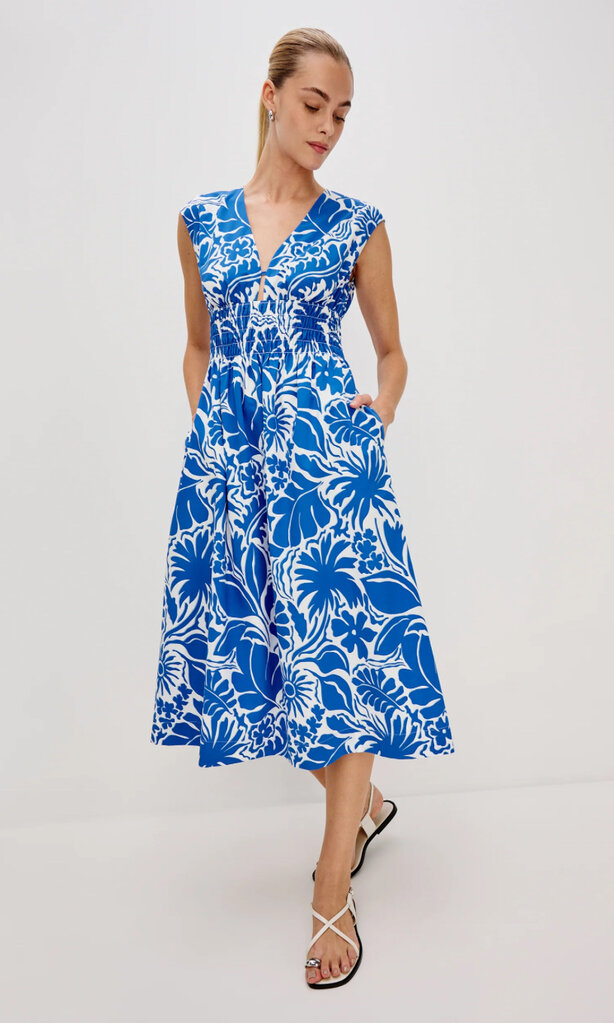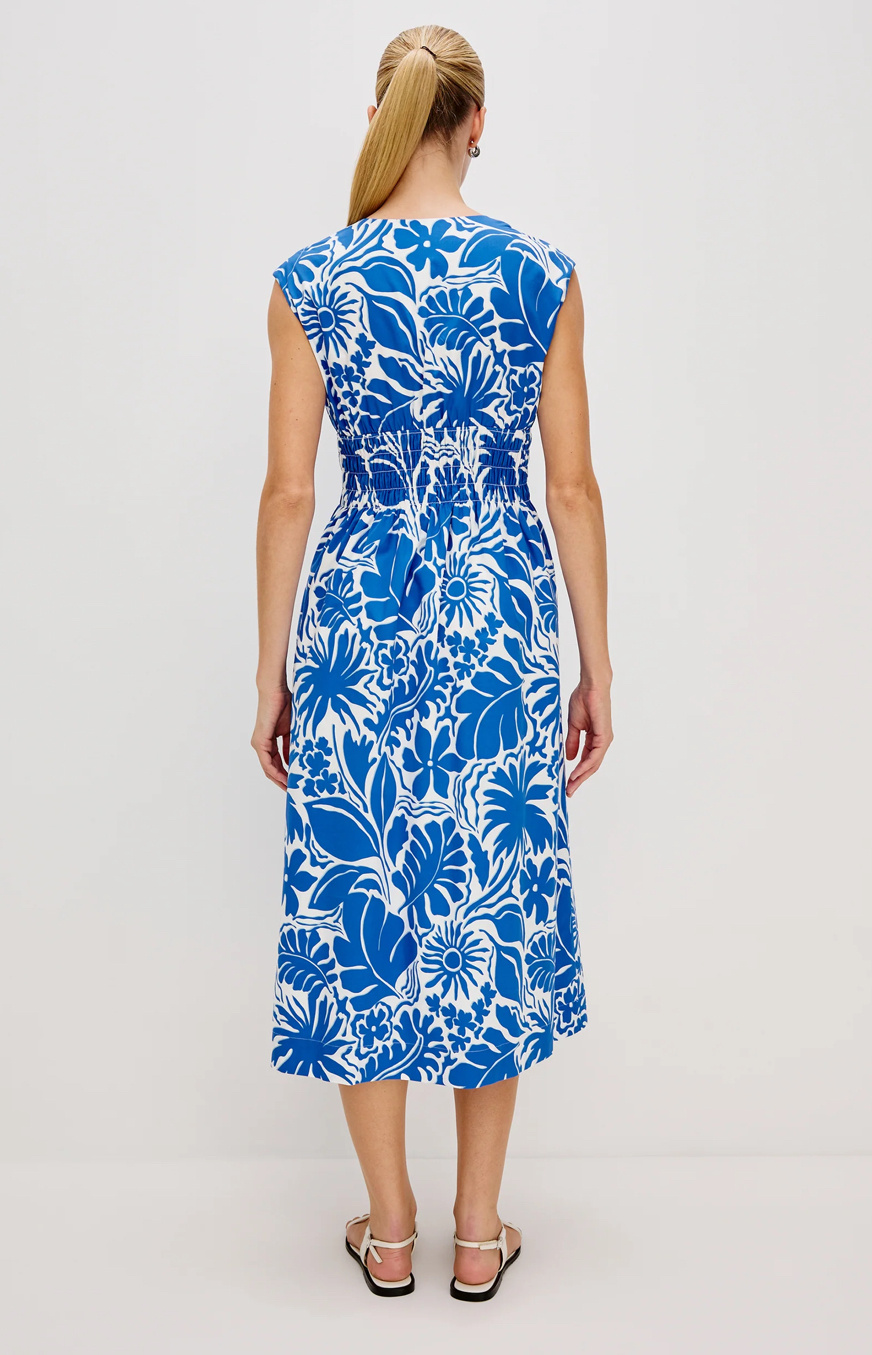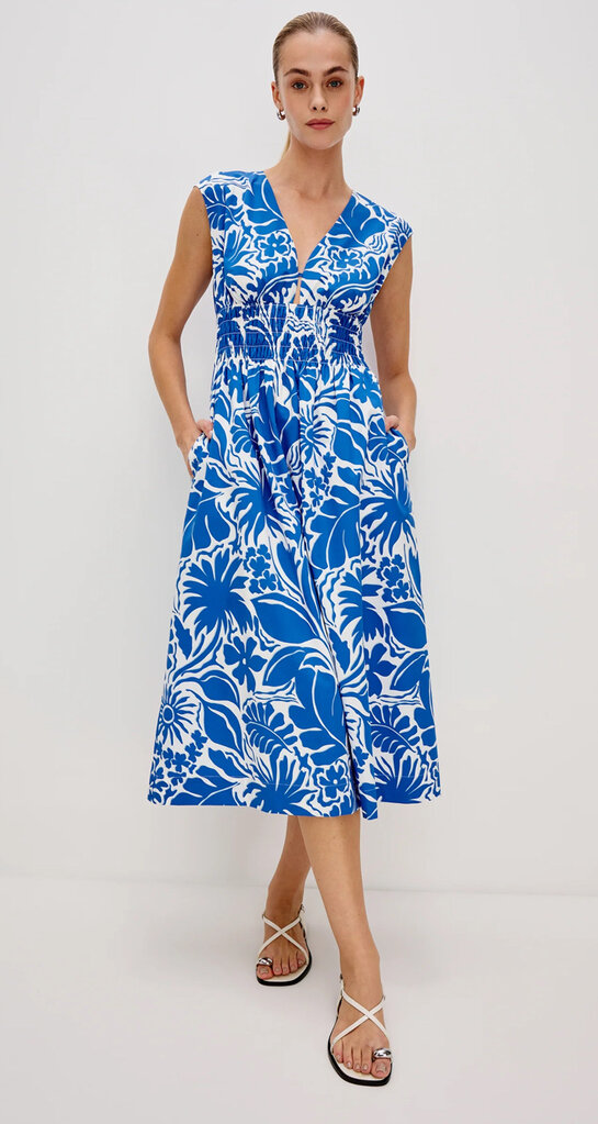 The Roxanne is an A-line midi dress featuring a smocked waist and a delicate cut-out detail. Fully lined and crafted in crisp cotton poplin for a fit that's equal parts comfortable and flattering.