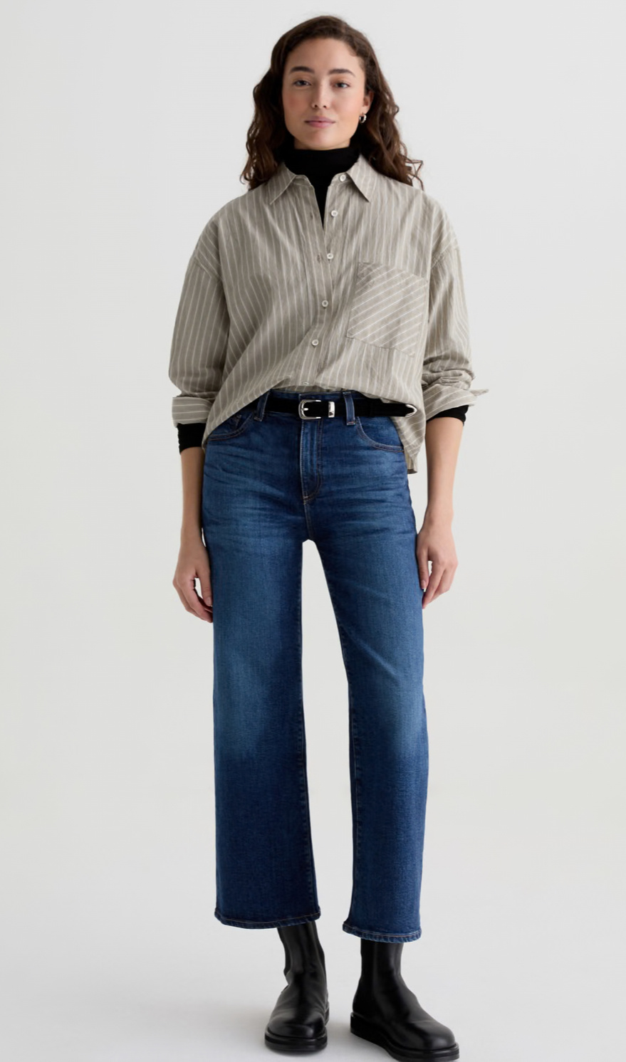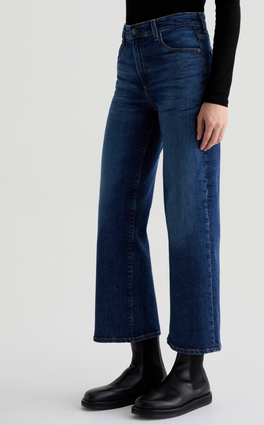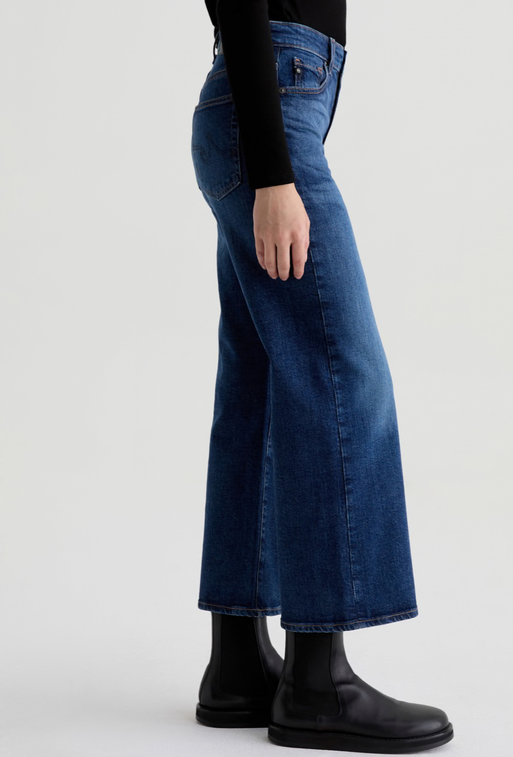 The Saige Wide Leg Crop is a mid-rise jean with loose, cropped legs and clean hems. Crafted from Vintage Comfort Stretch Denim, 11.75 oz. for superior comfort and style. Designed with classic five-pocket styling and premium construction for everyday wear.