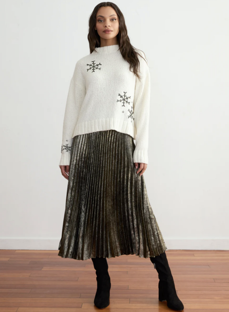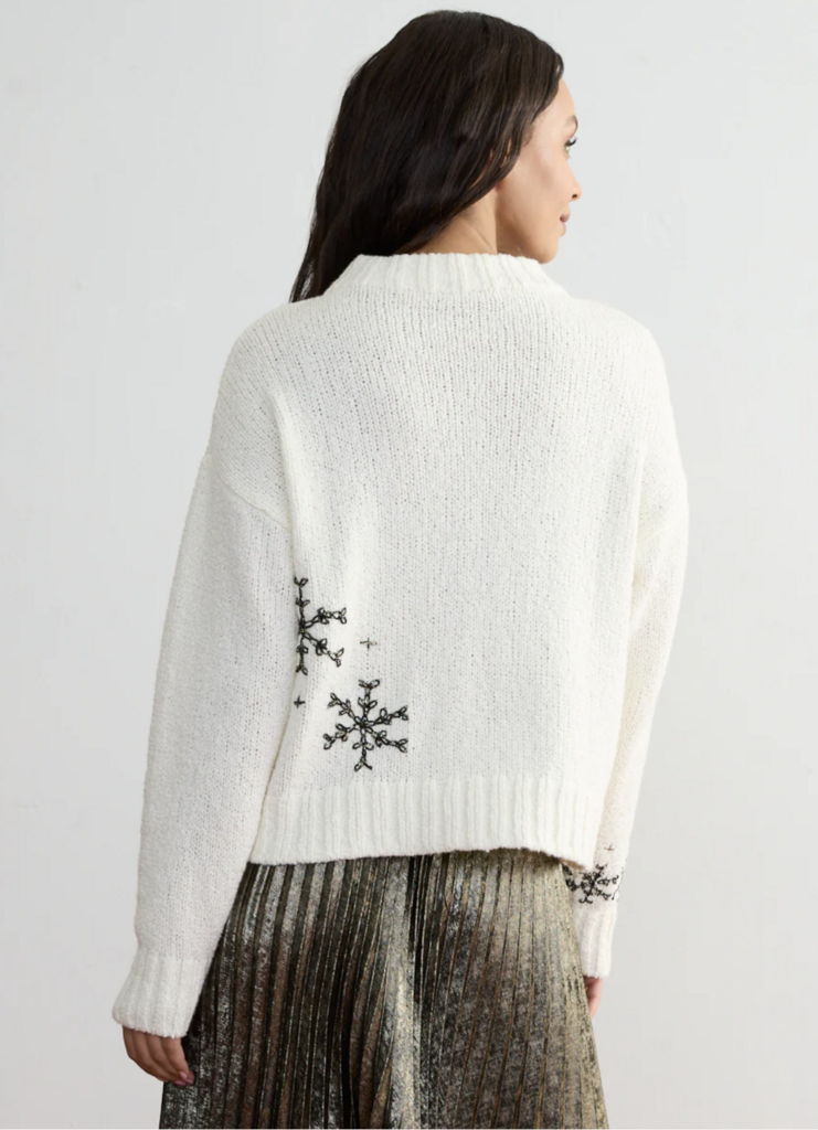 Her name is Snowflake Mock, and she’s a handstitched showstopper! With its elevated mock neck and cozy winter vibe, this is the perfect pullover for layering on chilly days or adding a touch of charm to your everyday look. Crafted from our best-selling boucle fabric that is lightweight, soft, and breathable, she features a delicate snowflake design handstitched from a sketch hand-drawn by Margaret herself. We are here to tell you, once you slip into this artful, sweatshirt-soft layer, you won’t want to take it off.