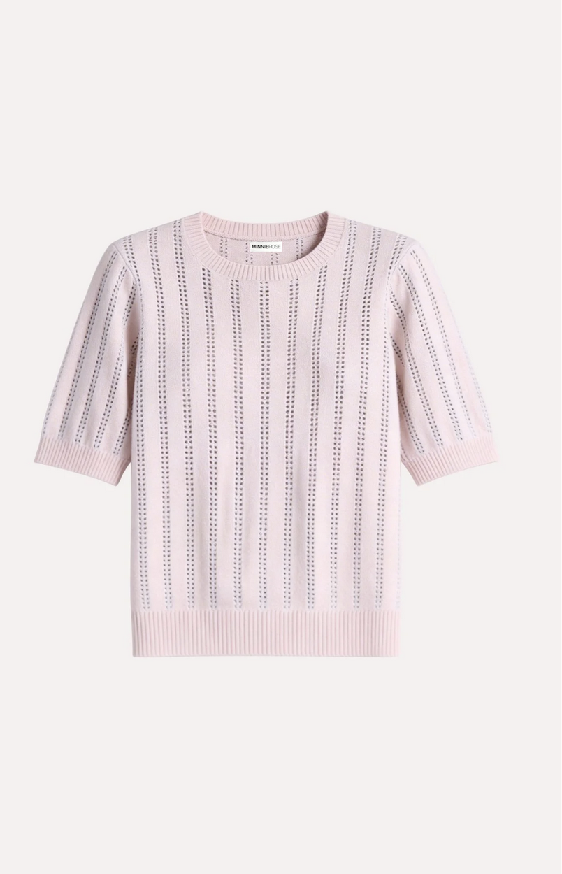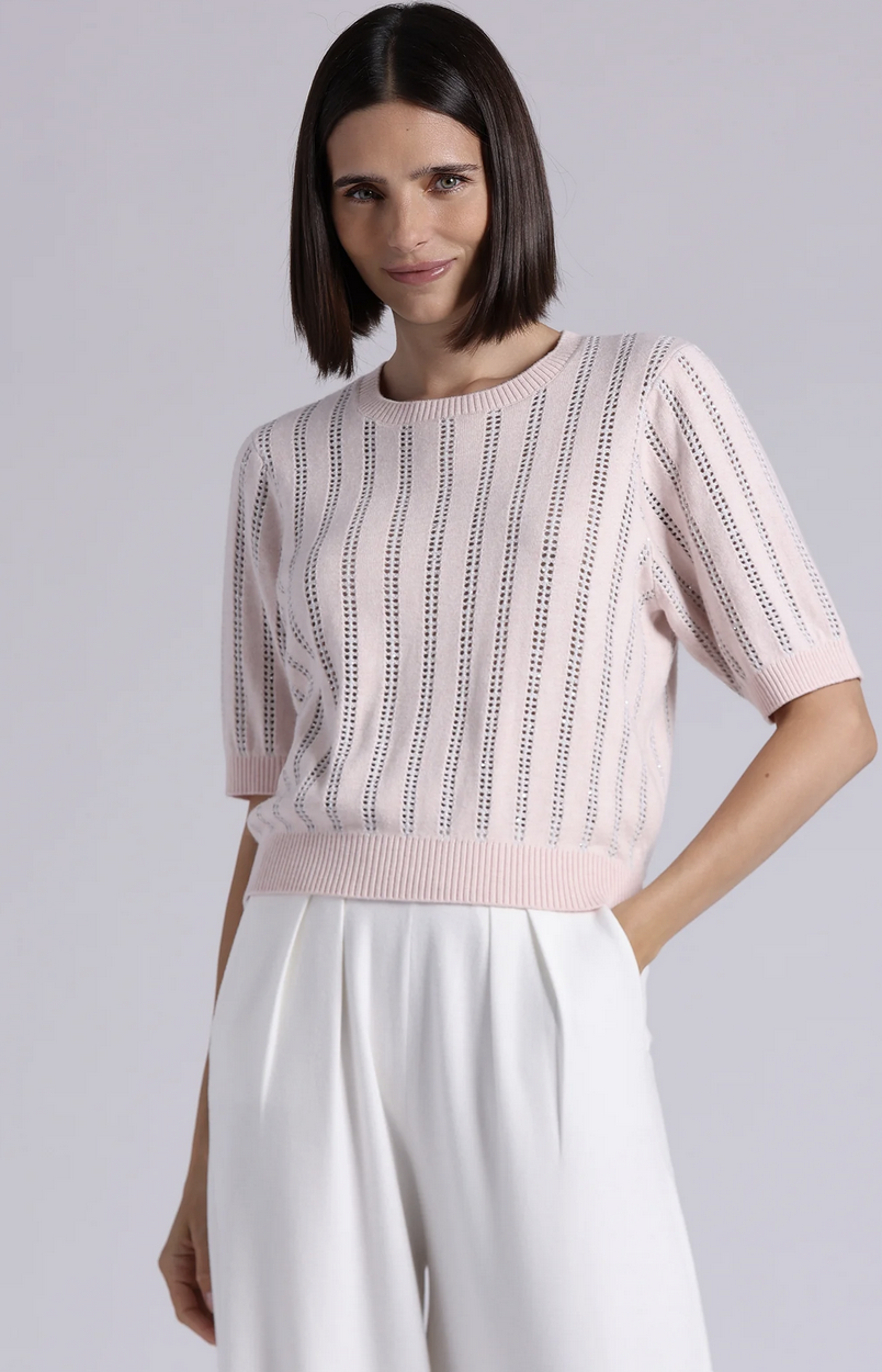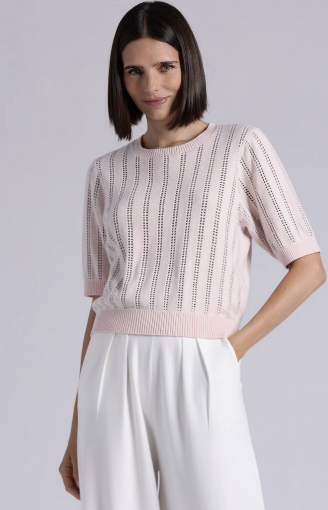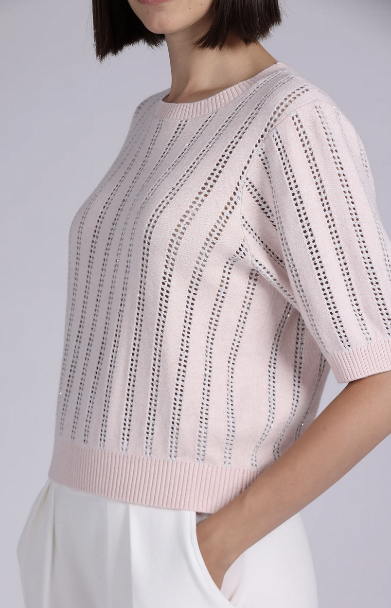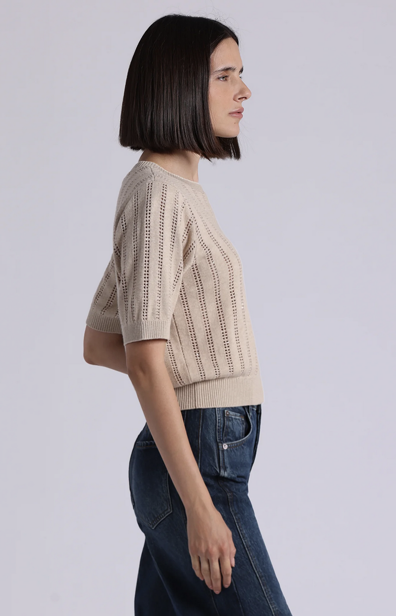 Short Sleeve Crew sweater made with a cashmere blend. A softly relaxed, gently puffed silhouette cinches at the sleeve and hem for a flattering finish.