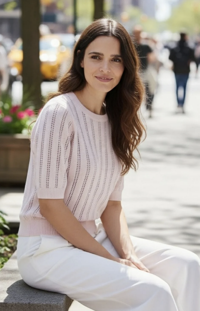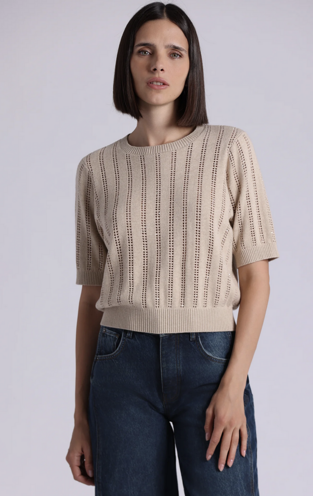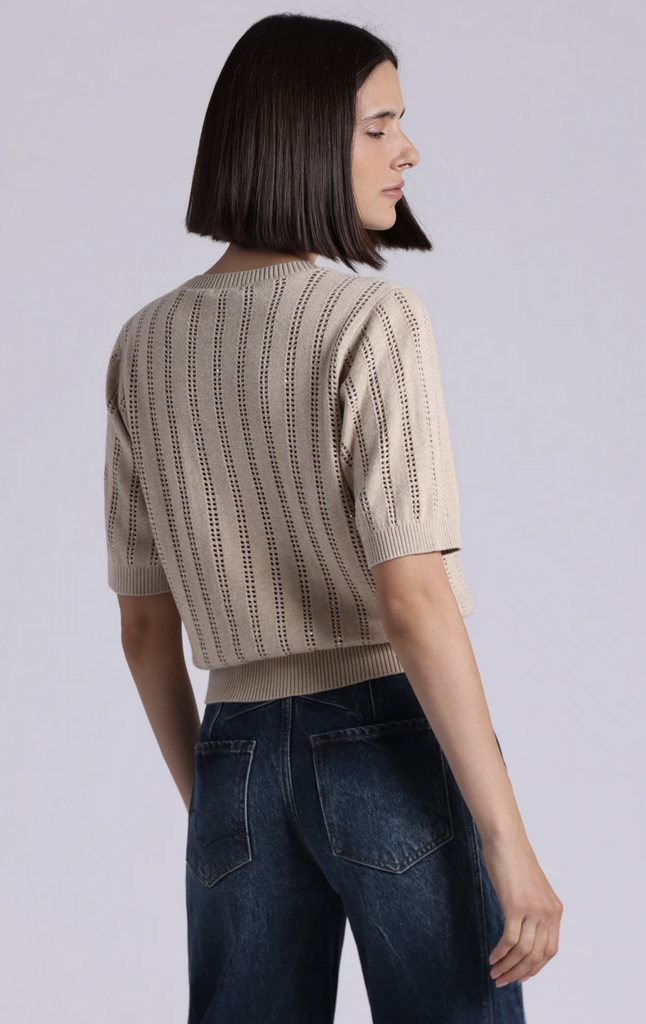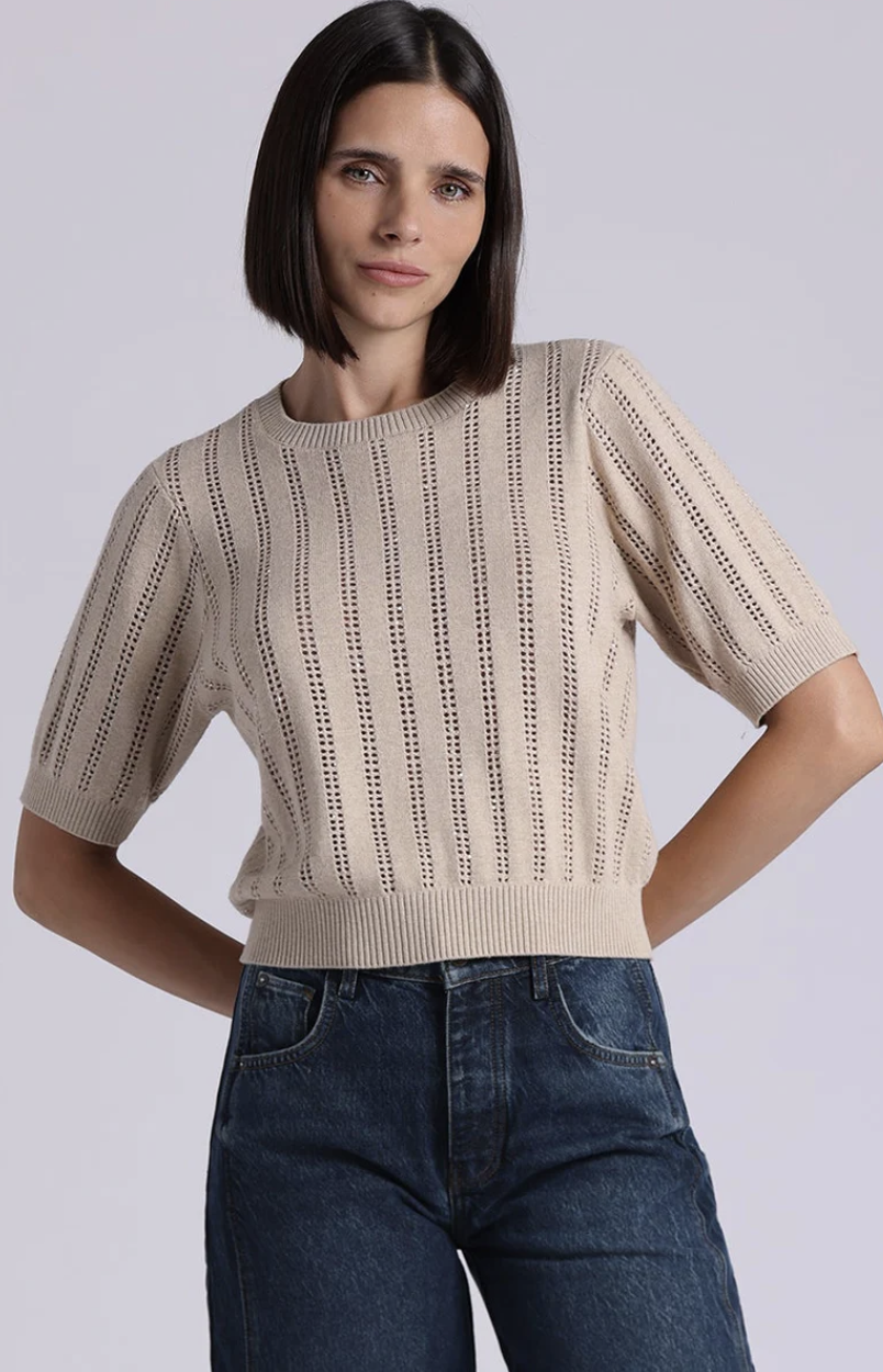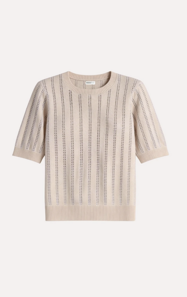 Short Sleeve Crew sweater made with a cashmere blend. A softly relaxed, gently puffed silhouette cinches at the sleeve and hem for a flattering finish.