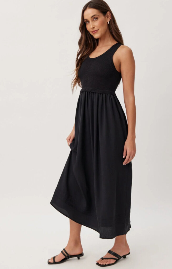 Easy and elevated, the Sweater Midi Dress is a modern-day maxi dress with its mixed media design ideal for summer's ongoing festivities.