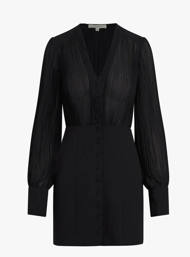 For when your plans change but your outfit doesn't. The Change Me Dress is cut from soft, silky satin with pleated details and a low buttoned V-neck. Full sleeves that keep it feeling effortless and a 34.5" mini for a wear-everywhere look.