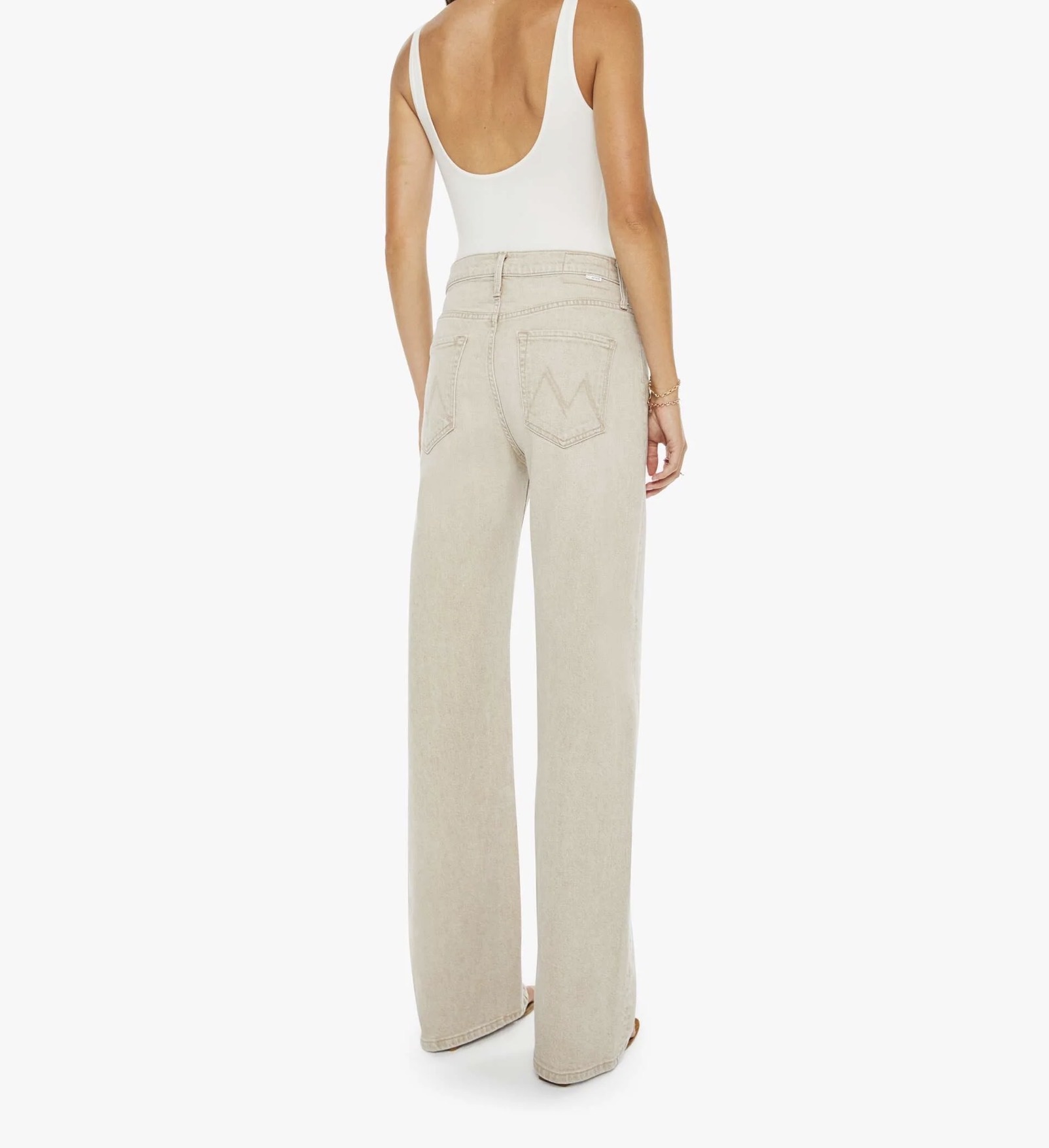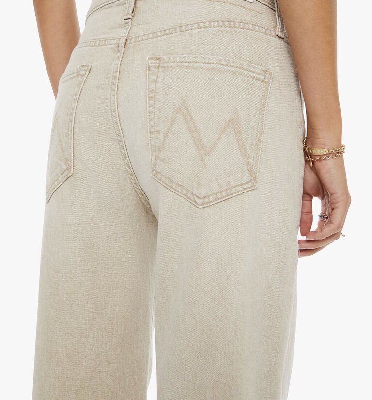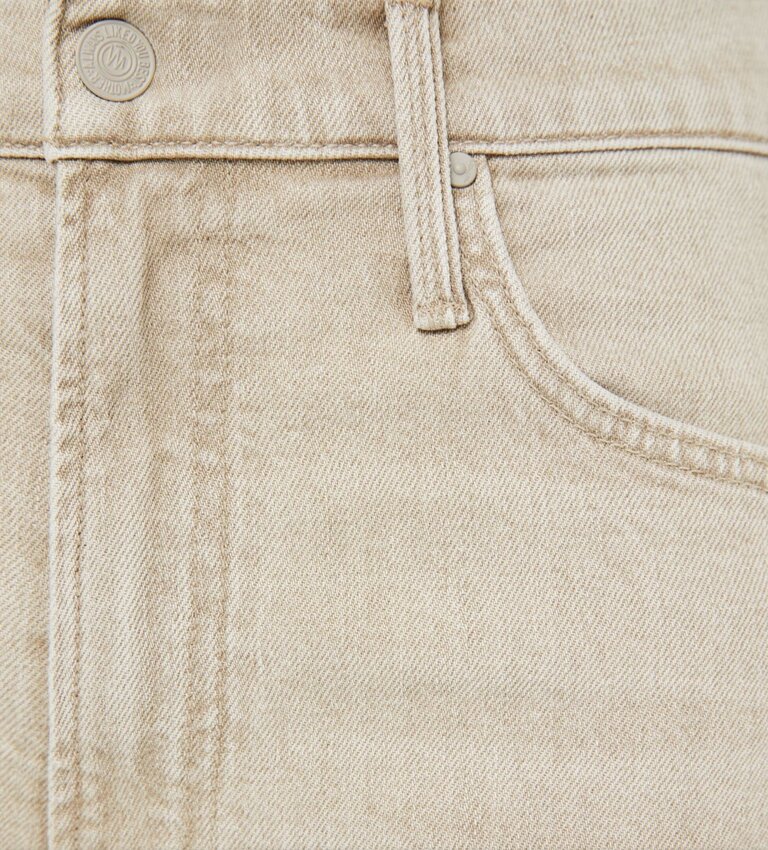 Jeans designed to sit on the hips with a zip fly, slouchy fit, loose straight leg and a 32-inch inseam with a clean hem. Made from semi-rigid SUPERIOR denim, Caramel is a faded khaki with tan stitching.