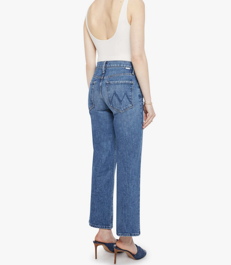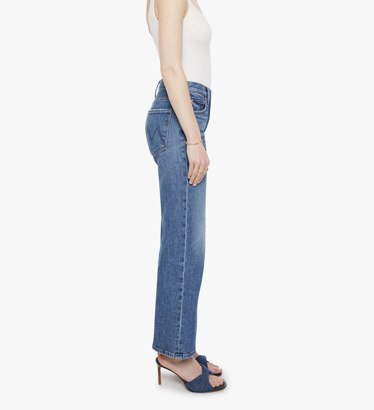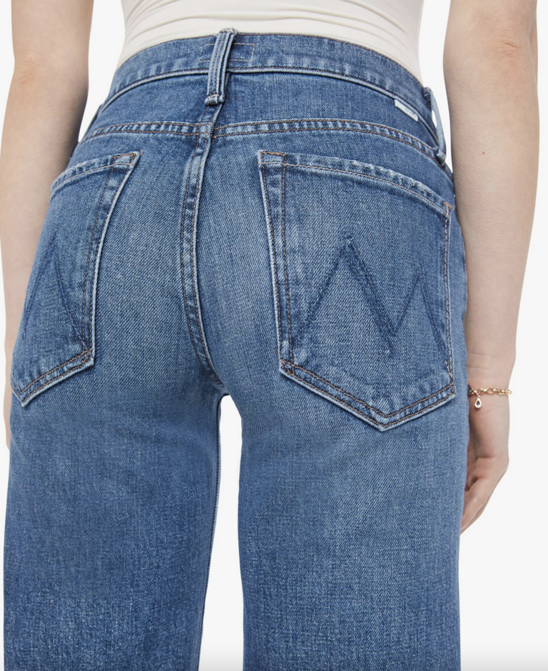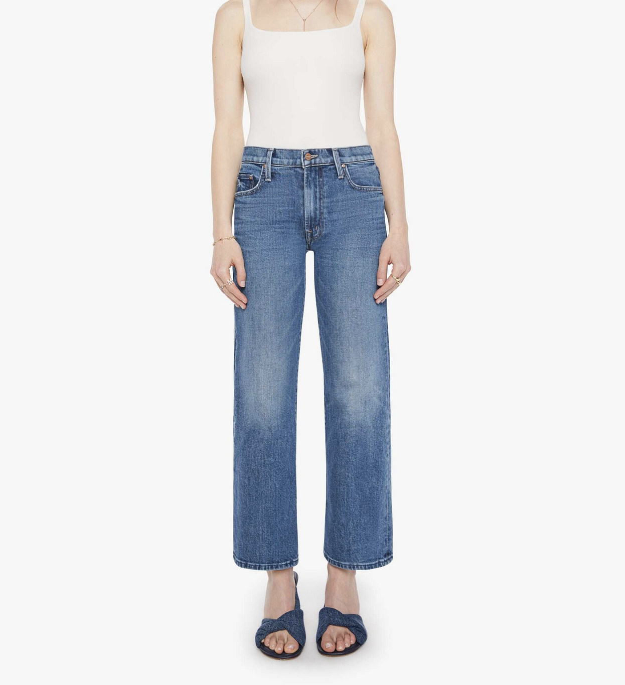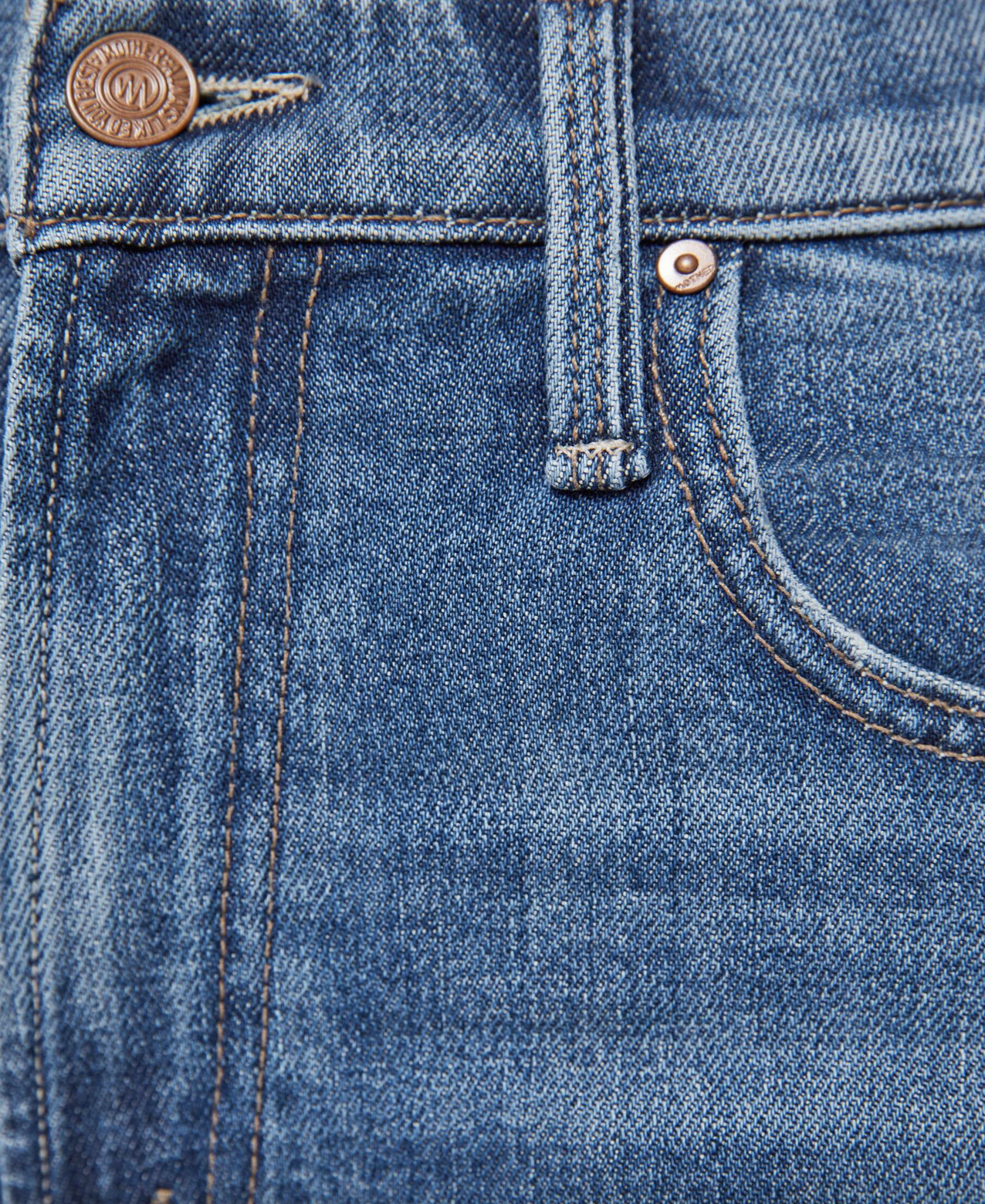 Shake it up. Mid-rise jeans with a wide straight leg, zip fly and clean ankle-length inseam. Made from semi-rigid denim, Tambourine Man is mid blue with subtle whiskering and fading at the knee.