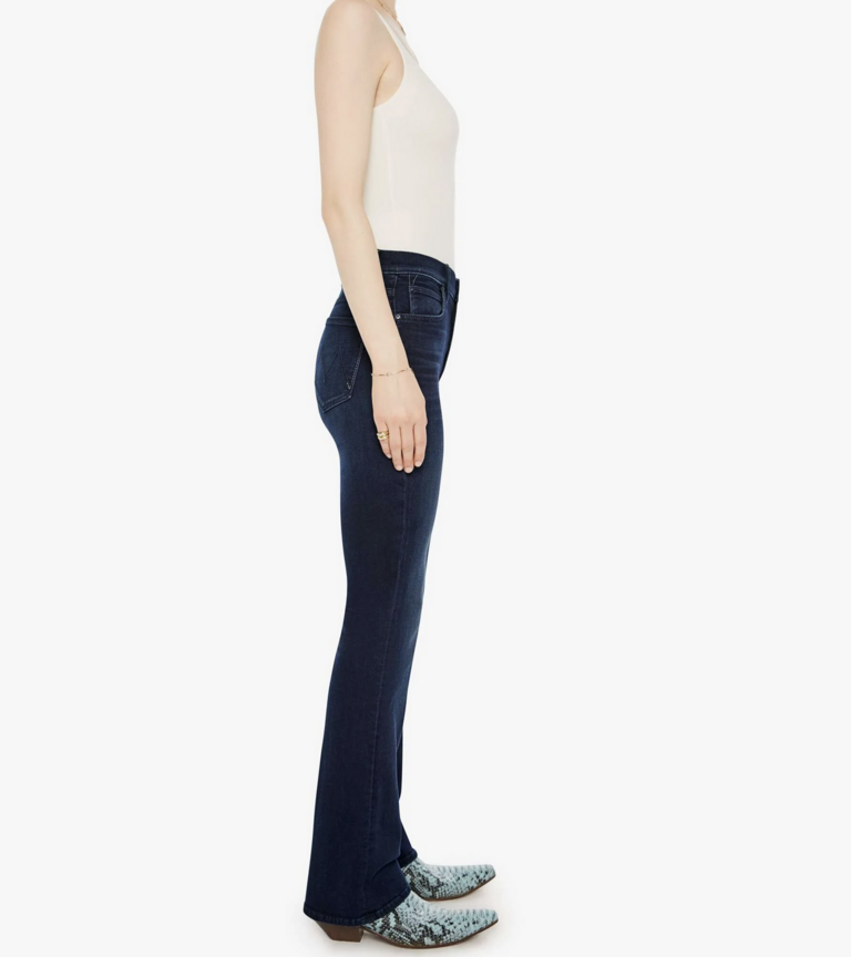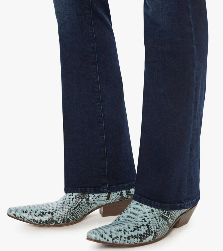 Change your tune. Mid-rise jeans with a flared leg, zip fly and a long 31-inch inseam with a clean hem. Crafted from soft stretch denim, Karaoke In Kyoto is a dark blue with subtle fading and whiskering.