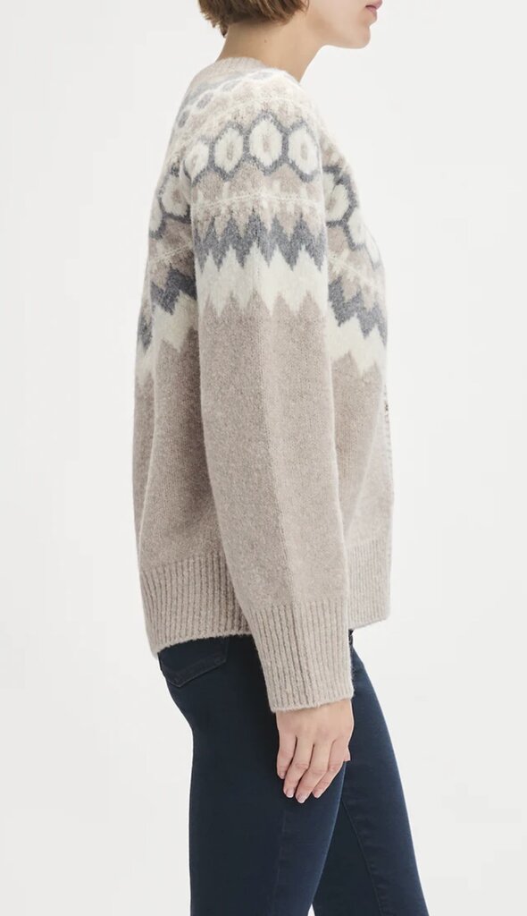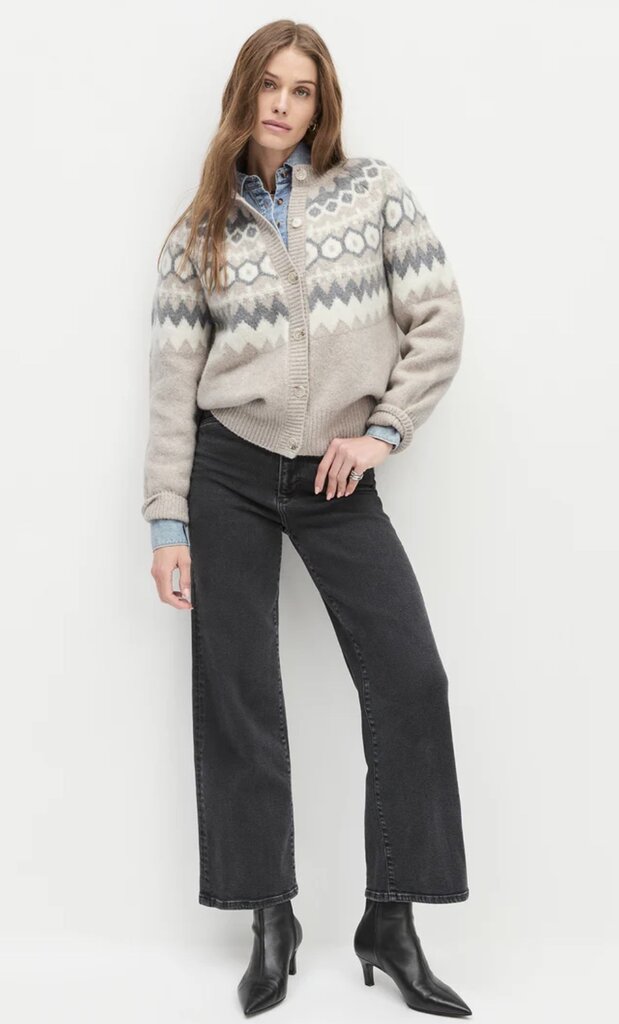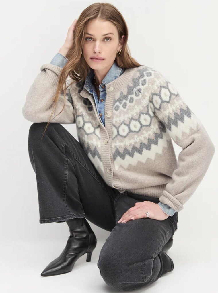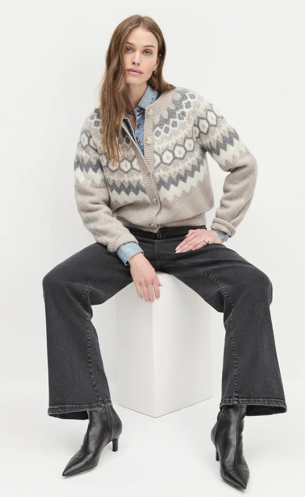 This cozy, oversized cardigan is sure to be a cold weather favorite in a classic fair isle pattern. It's crafted from a cashmere-wool blend for just the right amount of softness with an intarsia pattern in the most perfect seasonal shades.