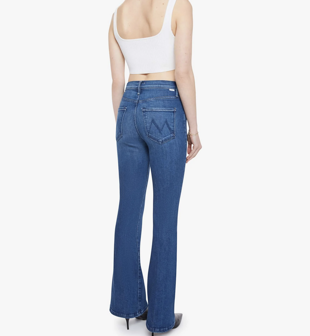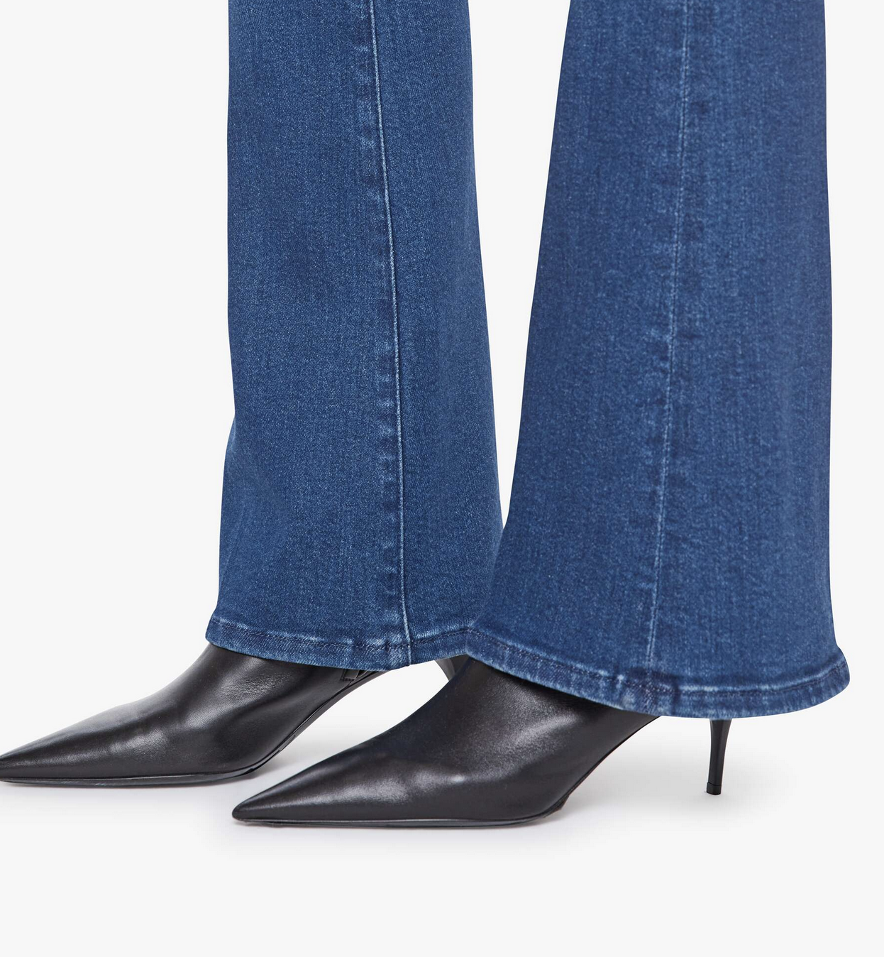 This cult-favorite flare jean has a mid rise, zip fly, 31-inch inseam and a clean hem. Made from stretch denim, Nip It In The Butt is a mid-blue with whiskering and fading at the knees.