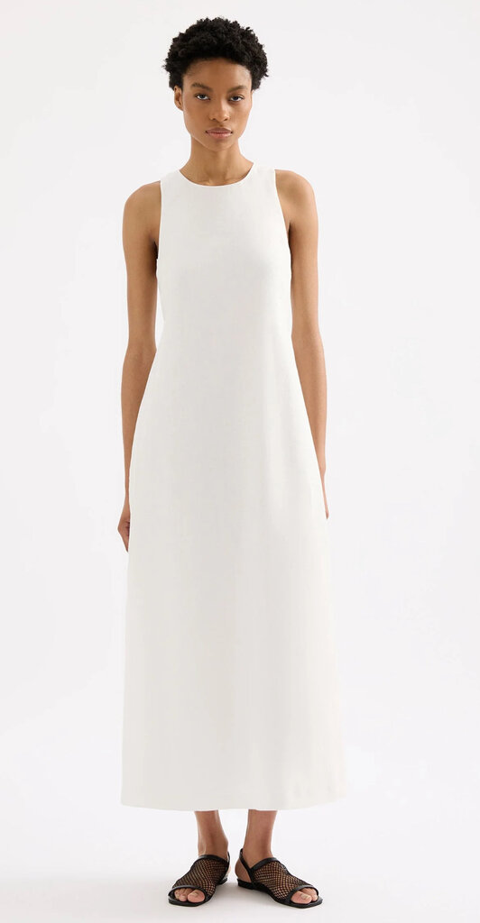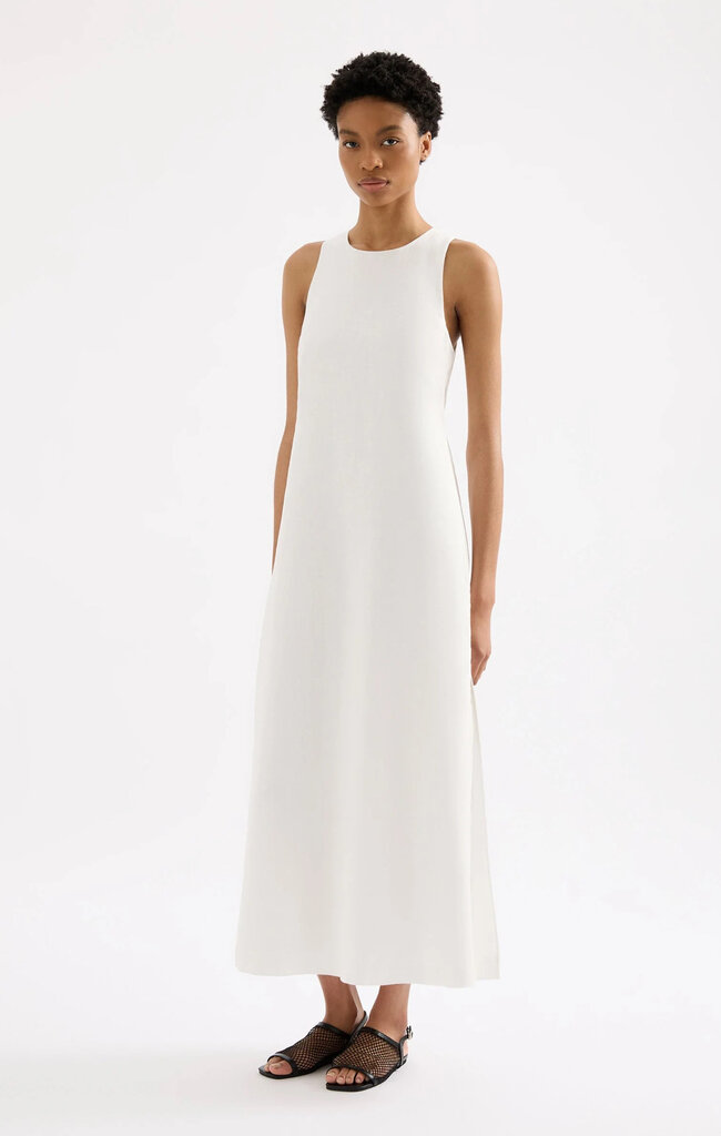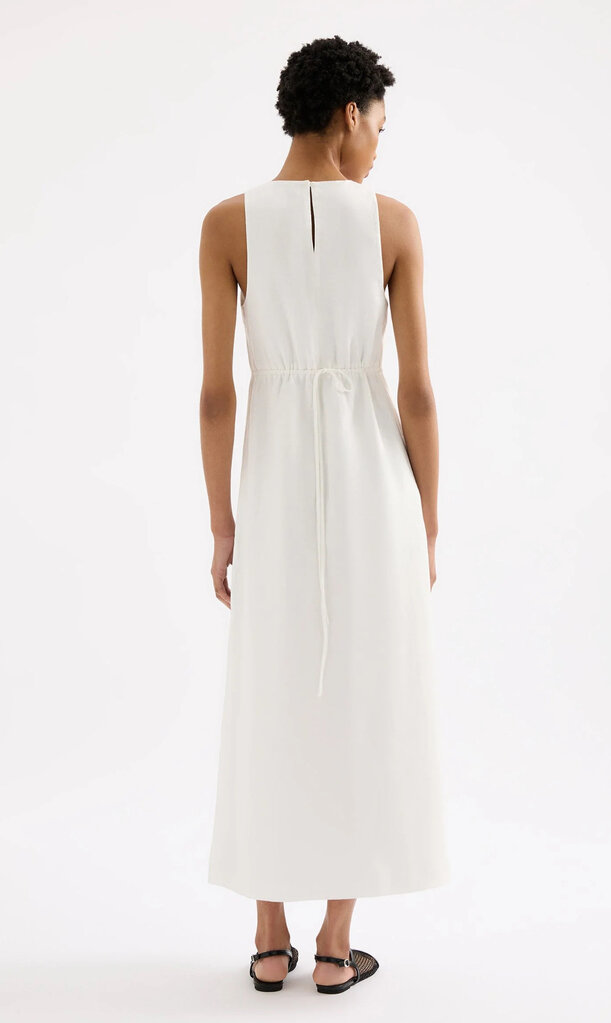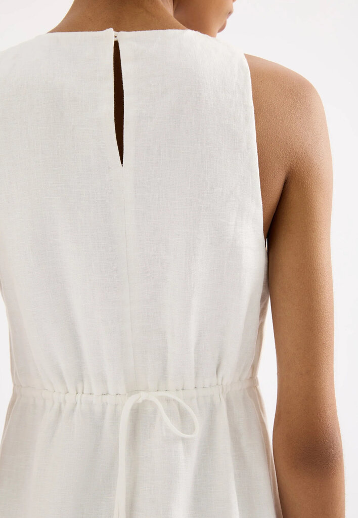 The Thilda Linen Maxi Dress is made from 100% Linen which has been washed for a soft, breathable hand feel. The silhouette is feminine with elastic and tie at the back waist and a full length skirt.