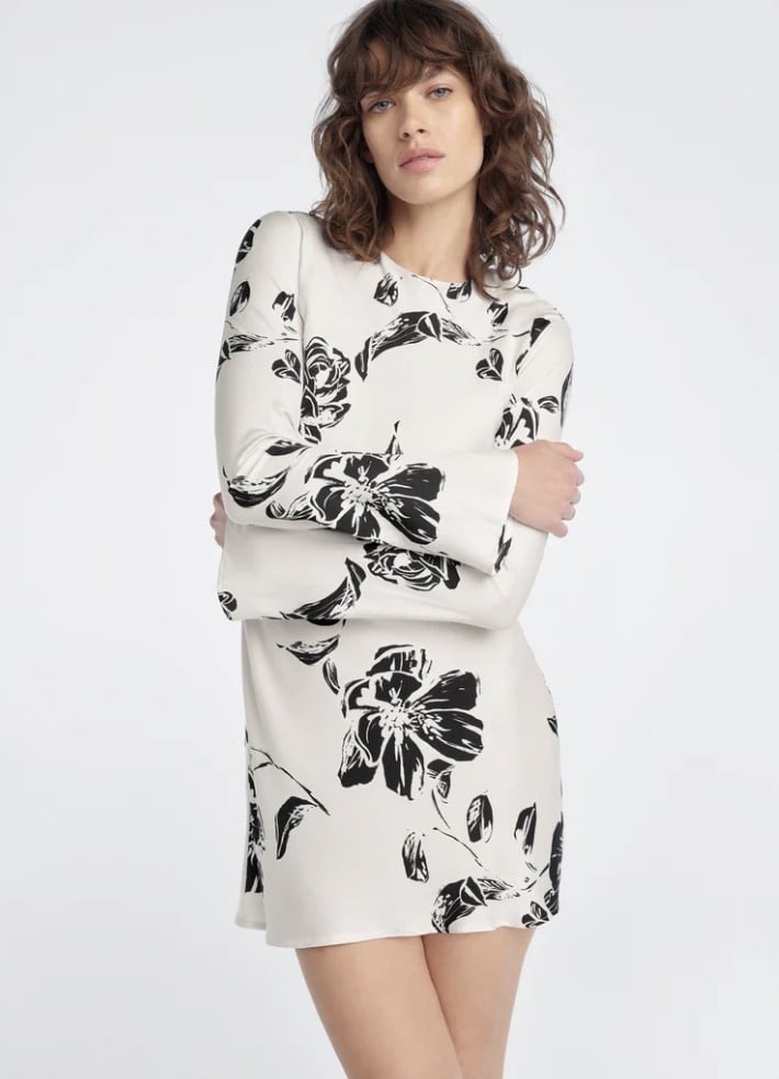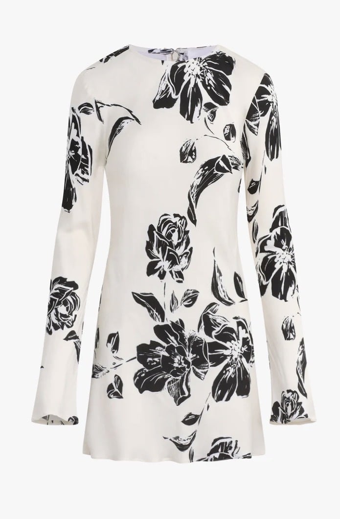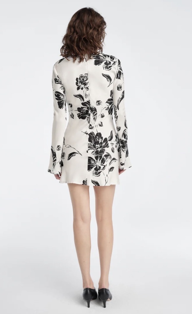 This classic 33" column mini is truly one of our favorites for the season. The Truly Madly Mini Dress is made from a viscose-sateen with long, bell-shaped sleeves and a bias cut for the most flattering silhouette.
