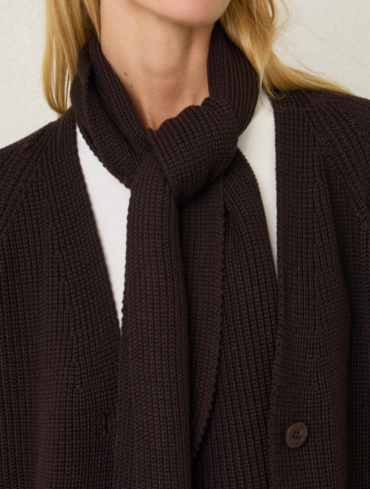 - Neck button to help secure the scarf