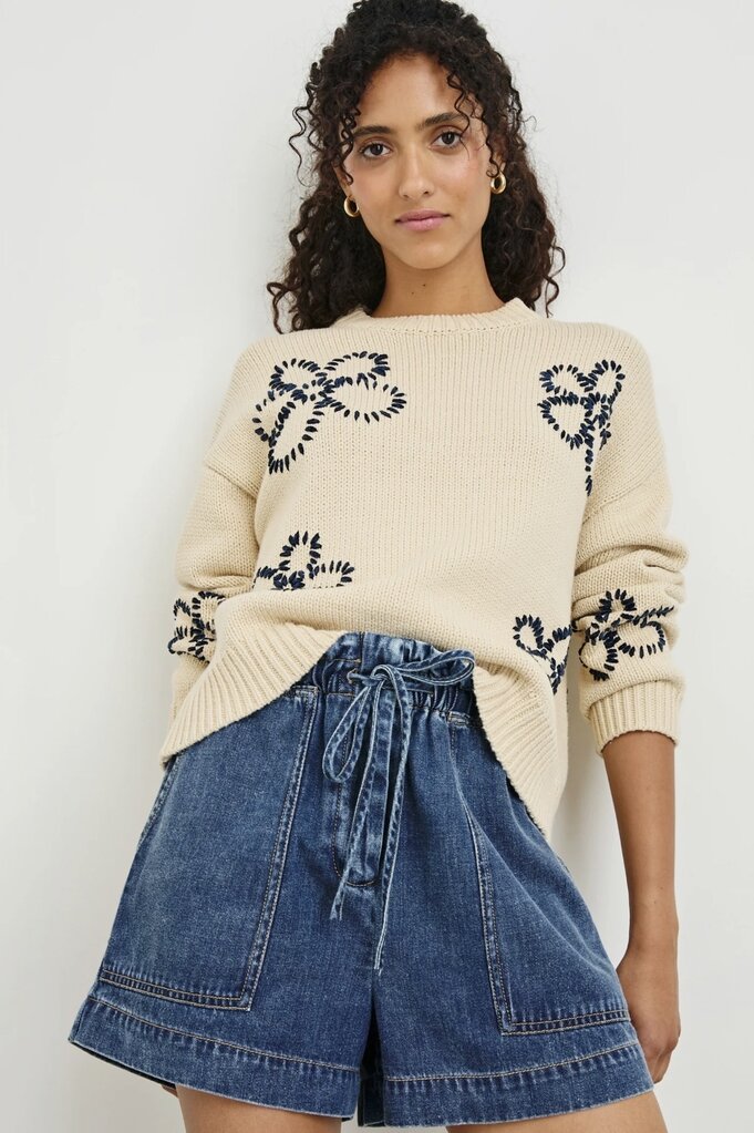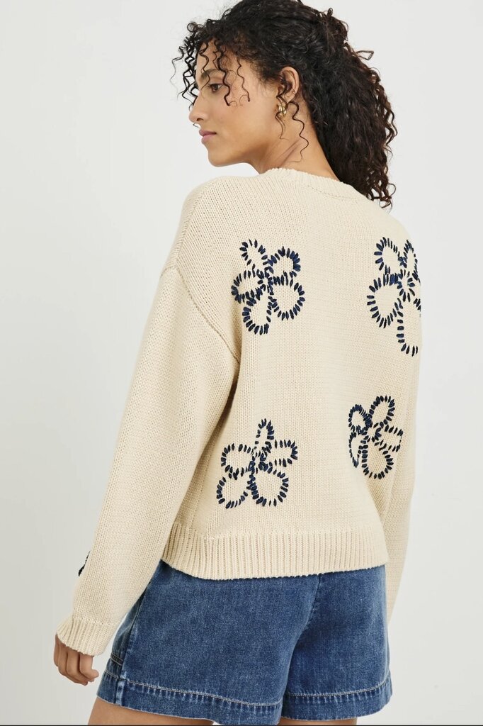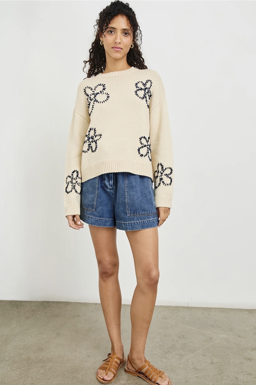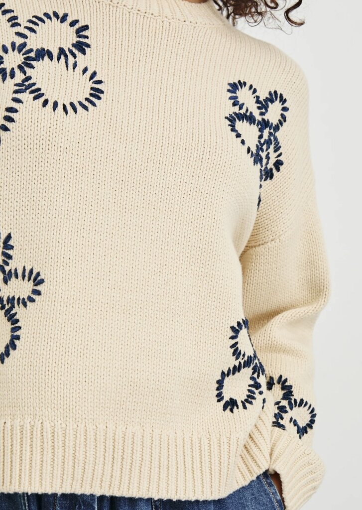 The Zoey elevates the essential knit into a statement-making layer. With a luxe cotton blend fabrication and eye-catching embroidery, this midweight sweater is crafted for comfort with a traditional crewneck fit.